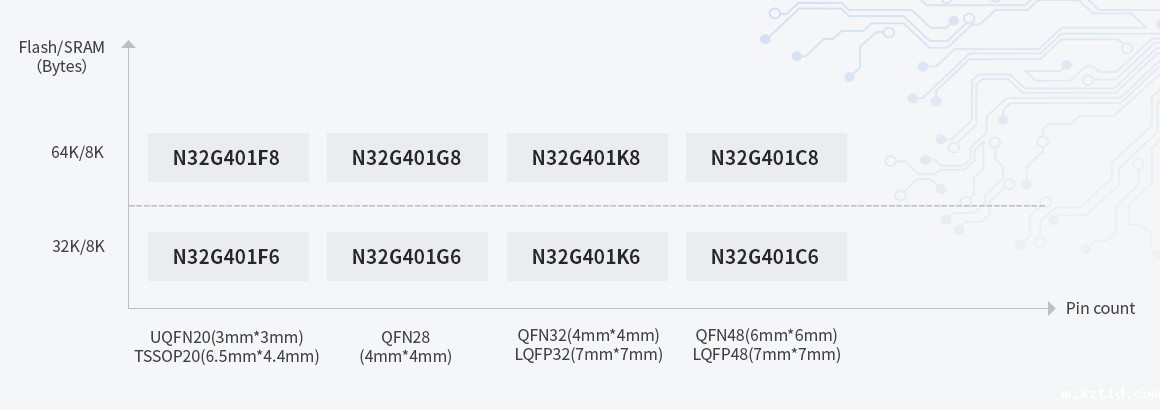 N32G401系列采用32-bit Arm® Cortex®-M4F内核,最高工作主频72MHz,支持浮点运算和DSP 指令,集成高达64KB 嵌入式加密Flash,8KB SRAM,集成丰富的高性能模拟器件,内置1个12bit 4.2Msps ADC,3个高速比较器,集成4个U(S)ART、2个I2C、2个SPI/I2S 等数字通信接口。